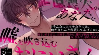 「好き。好きだよ。大好き。だから、俺の子供を孕んで。ね、孕んで。孕め。孕めよ」マンションの階段から転げ落ち目を覚ますと、見知らぬ男がそばにいた。どうやらあなたは、記憶喪失になってしまったようだ。ひとまず彼の家で応急手当てを受けたあなた。しかし、彼の言動はどうにも胡散臭い。気づけば、キスや愛撫で体をほぐしながら、セックスへ……。次第に彼の言動は徐々に強いものへとエスカレートしてゆく────<キャラクター>■不知火彰(しらぬい あきら)身長:185cm 体重:65kg 年齢:26歳これまであまり女性経験が無かったこともあり、一人の女性に対して強い執着心を見せる。しかし、付き合ったり結婚したりなどとはあまり考えておらず、陰から見守ってられれば十分。…と、己の心を殺している。だが、彼自身も認識していないところで、気持ちは大きく膨れ上がっている。ヒョロのっぽで髪はボサついており、それでも髭剃りは社会人として行なっている。よく見ると、そこまで悪くない顔をしている。近頃は夜な夜なやる事があるため、目の下に酷いクマができている。■あなた記憶喪失となってしまったため、過去は一切思い出せない。彰にマンションの階段で助け起こされたのが、記憶を失ってから一番最初の記憶。部屋着一枚というラフな格好と、財布もスマホも持っていなかったことから、彼が言っている事がウソであってもこの建物内に住んでいたのは確かだろう。<トラック>■トラック1「記憶喪失」(4:46)「俺の名前は不知火彰。キミとの関係は…まあ、恋人関係だね。実はそろそろ同棲を考えてて…言葉の意味までは忘れていないよね?」■トラック2「不安を紛らわせる方法」(15:04)「とろとろあつあつ、なのに強く噛みついてきて…はは、思ってたよりずっとエッチに搾り取ろうとしてくる。中に入れたのがおちんちんだったら、そう長くはもたなかっただろうね。」■トラック3「欲望の子作り」(14:10)「子宮の入り口と俺のおちんちんの先がキスしてるよ。全くおちんちんを離そうとするつもりがないみたいだね、キミの体は。本当に、とんでもない変態だよ。」総再生時間(34:00)ーーーーーーーーーーーーーーーーーーーーーーーーーーーーーーーーーーーーーーーーーーーー■関連タグ記憶喪失 恋人 嘘 マンション キス ディープキス 乳首責め 愛撫膣 指 汁感多め べろちゅー 潮吹き フレンチキス乳首舐め おまんこ 淫語 手マン 挿入 子作りピストン 射精 孕ませ 中出し ゴムなし
