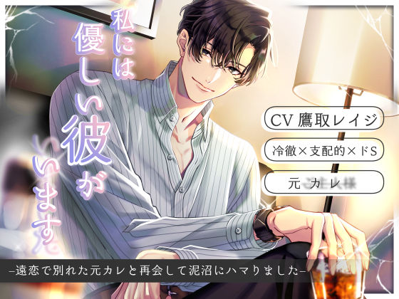 「あいつをブロックするまで、俺は動いてやらない。お前の中は、俺のザーメンが欲しいって、言ってるようだが。」 ────────────────── <作品概要> 貴方と冴島の関係は、実に順風満帆だった。 お互いに満たされ、結婚もそう遠くないだろうと思っていた。 その矢先に冴島の海外赴任が決まり、貴方は選択を迫られる。 仕事を辞めて冴島に着いていき彼を支えるか、日本に残って仕事を続けるか。 迷った末。 貴方は仕事を選び、冴島と別れた。 それからというもの、転職先の会社で再開した大学時代の友人と交際を開始し、 冴島といた時間を少しずつ忘れることができた。 そんなある日、取引先の会社で偶然――。 冴島と再会し──。 ───────────────── <登場人物> 冴島 正人(さえじま まさと) 34歳、外資系コンサル会社の管理職。 貴方とは前職場の時に交際していたが、遠距離恋愛になってしまい、別れた。 自信家だが、その自信には裏打ちされた実力を兼ね備えている。 欲しいもののためなら手段は択ばない冷徹な性格だが、 4年前に別れた貴方を思い続ける一途さも持っている。 【主人公(リスナー)】 28歳。営業職の女性。 ‘結婚に煮え切らない、友達の延長線上の彼’がいる。 冴島とは4年前に別れているが、その時にドMに仕込まれてしまった。 彼の海外赴任後に転職し、そこで大学時代の同級生である今の恋人と付き合い始めた 冴島と再会してから当時の感覚を思い出していたものの、 自分から彼を拒絶した手前、とても気まずさを感じていた。 それを彼に見抜かれたことから、どんどんと深みに嵌まる。 ────────────────── <トラック一覧 約84分>(SEなし差分あり) ■01_再会(03:43) 取引先との打ち合わせを終え、帰路に着くためエレベーターへ。 すると、そこへ急ぎ足で乗り込んでくる男性が。 エレベーターに乗るやいなや、その男性は驚いた様子で貴方の顔を見つめる。 呆気に取られること数秒、貴方はその男がかつての恋人・冴島であることに気付いた。 「まさかこんなところで再会するとは夢にも思わなかったよ。久しぶりだな」 「せっかく再会したんだ。思い出話をつまみに、食事でもどうだ?」 ■02_暴かれる本心【耳舐め・愛撫・セッ◯ス(ゴム有り)】(24:36) 複雑な気持ちで冴島との食事に臨んだ貴方は、盛大に酒をこぼしてしまう。 服にかかった酒をそのままにする訳にもいかず、なし崩し的に彼の家へ。 歩いたことで余計に酔いが回ったのか、冴島の部屋へ着く頃には眠ってしまった。 少しして目を覚ました貴方の表情を見て、冴島は何かを察したようで──。 「一体、俺に何を期待している。お前の方から離れておきながら、俺に何を望んでいる」 「目を逸らすな。俺を見ろ」 ■03_抗えない【言葉責め・オナニー・イラマチオ・ハードセッ◯ス(外出し)】(16:45) 4年ぶりに冴島と体を重ねた貴方は、罪悪感と満足感の狭間にいた。 彼との相性は言うまでもないけれど、今の恋人に申し訳ない──。 その葛藤すら冴島にはお見通しのようで、貴方を帰すまいと逃げ道を塞ぐ。 周到なのは昔と変わらず、貴方は気持ちに答えを出せないまま彼との情欲に溺れていく。 「──ほら、香ってるぞ。お前の発情の匂いが」 「答えは出ているというのに、お前はいつまでもはっきりしないな」 ■04_「──おいで」(03:27) 冴島の家から帰ってから10時間後、意を決して冴島に電話をかける。 こんな歪んだ関係は、終わりにしなくちゃいけない。 そう決心してスマホを手に取ったはずなのに──。 「4年前、どうして俺から離れた? ちゃんと幸せだっただろう」 「──もうやるべきことは分かってるな? 戻って、こい」 ■05_満たせるのは俺だけ【目隠し、ディルドでのオナニー・首絞め・生セッ◯ス】(18:38) 電話の後、今度は自分の意思で冴島の家へ足を運んだ。 ドアを開けた瞬間、彼に手を引かれもう離さないと激しく口を塞がれる。 抵抗するなと言われるが、貴方にはもうそんな考えはなかった。 恥ずかしい命令にも従い、冴島が与える快楽に身を委ねる日々に戻るために──。 「あの頃みたいに口にできるよな? ほら、もう一度呼べよ。俺を、ご主人様と──」 「そういえば──あとひとつ、お前にはやるべきことがあったな?」 ■06_俺に依存していればいい【手錠・お尻ぺんぺん・生セッ◯ス】(06:54) ◇おまけ ・フリートーク_鷹取レイジ様(09:31) ────────────────── <制作情報> CV:鷹取レイジ様 シナリオ:蒼凪美郷様 イラスト:北宮みつゆき様 ロゴ:T奈様 ────────────────── ・ダミーヘッドマイク(KU100)でスタジオ収録した音声となります。 ぜひ、ヘッドフォンで聴いてください。 ・音声やイラストの複製・二次配布・無断アップロード・配信サイトでの配信等は固く禁じます。