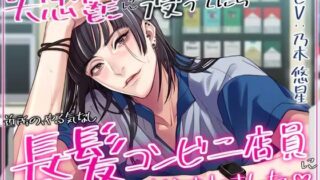 あらすじ長年付き合った恋人に振られ、自暴自棄状態のあなた。毎晩飲み歩き、コンビニで酒を買い、自宅でも飲み…という自堕落な日々を過ごしていた。ある日もベロベロに酔った状態でコンビニに行くと、やる気なさそうな長髪のコンビニ店員に「配達が届いている」と言われる。なぜ自分を認識しているのかと驚くあなた。さらに、その配達は、彼氏に振られ、勢いで頼んだアダルトグッズである…やけになり、そのことを伝えると、密かにヒロインに一目惚れしていた店員が、漬け込む隙を見つけたように「あと5分でシフト終わるので良ければお話聞きましょうか」とあなたを誘い…登場人物紹介狗又 景(CV:乃木悠星)年齢:20歳身長:185cm職業:コンビニ店員あなたの家の近くのコンビニ店員。一年以上前からあなたに一目惚れしている。ちょっとクズだけど純情で純愛。恋した相手だけにあまあまになるタイプだが、嫉妬するとプレイが過激になったり、意地悪になりがち。自分でお金を貯めて大学に行くためにコンビニでバイトしている。トラックリストトラック1「貴方には…これがまだ冗談に聞こえるんですか?──俺、本気です」 プレイ:キス・手マン・クンニ・素股27:30トラック2「そうだ!折角ですから……アレ、使ってみましょうか。昨日うちに忘れて行った、玩具」プレイ:乳首責め・玩具責め27:37トラック3「体だけの関係なんて嫌。好きだから、あなたの心も全部欲しい…」「ヤってる事はアレだけど…俺、本気であなたの事が好きなんだ」プレイ:景のオナニー盗み聞き7:48トラック4「ははっ。またイっちゃった? 今日これで何度目?ほら……俺にイカされちゃった君の顔、ちゃんと見せて」プレイ:キス・クンニ・生ハメ・中出し22:17トラック5「俺をこんな風にした責任……取って下さいね?」プレイ:手コキ・フェラ・挿入13:29総再生時間1時間38分41秒特典情報特典情報■200DLで乃木悠星様(狗又景役)のフリートーク公開!→達成しました!クレジットシナリオ:十六夜夏樹様 ( @natsuki_izayoi )イラスト:cielo様 ( @cielo_we )声優:乃木悠星様 ( @star_hoshikun_ )