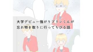 強がり金髪プリンくんのおちびり話第二弾大学デビューした陰キャの強がり金髪プリンくん(悠真)が、大学で忘れ物を取りに行ったら猫にビビっておしっこをちびる話。ほのぼの。彼の友人達と一緒に、悠真を生暖かく見守りましょう。